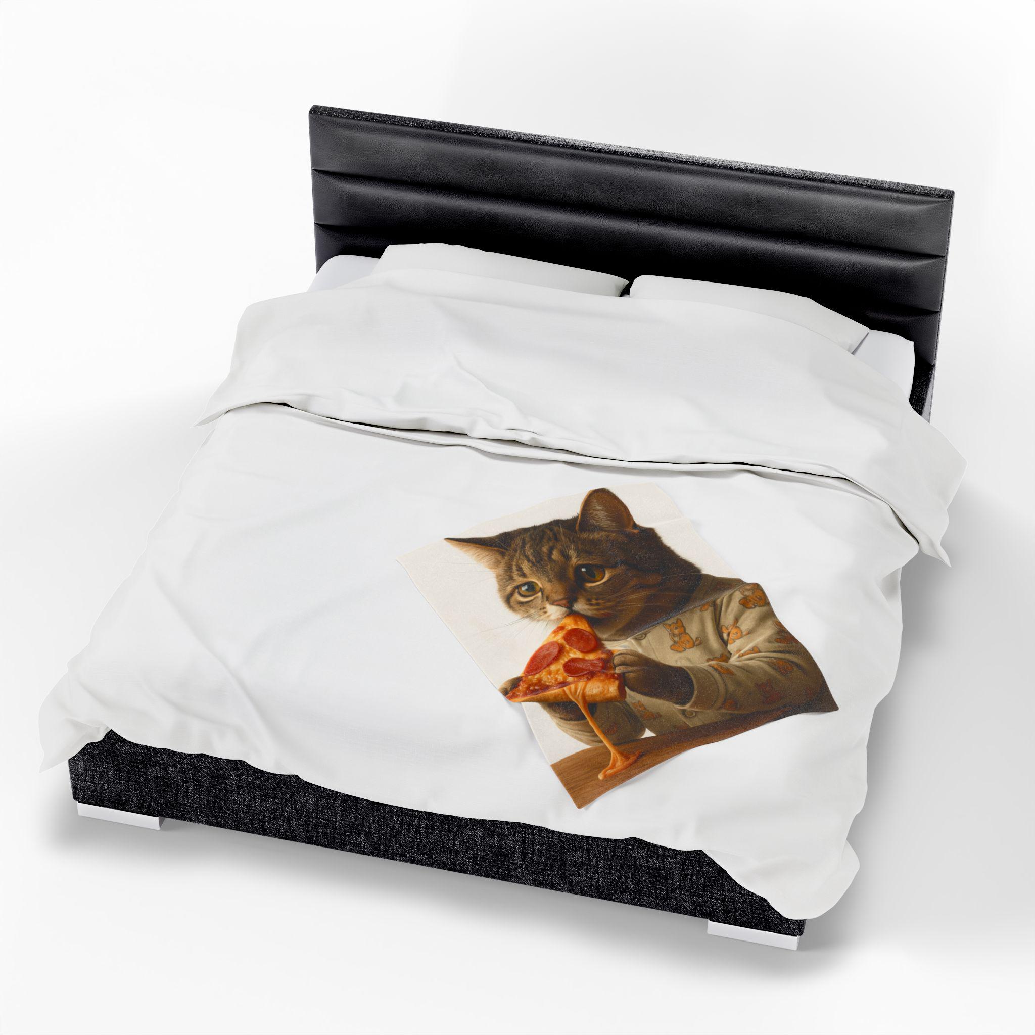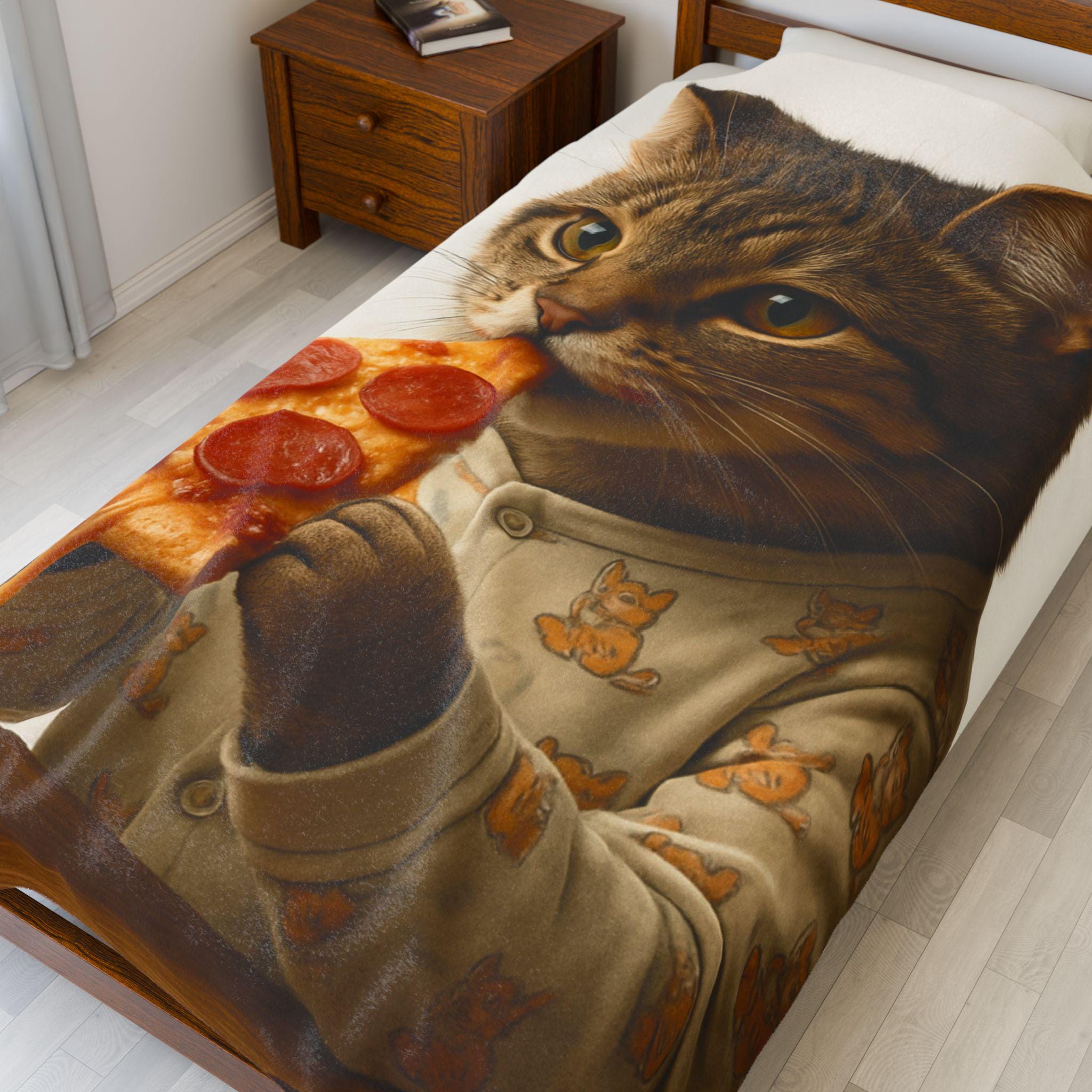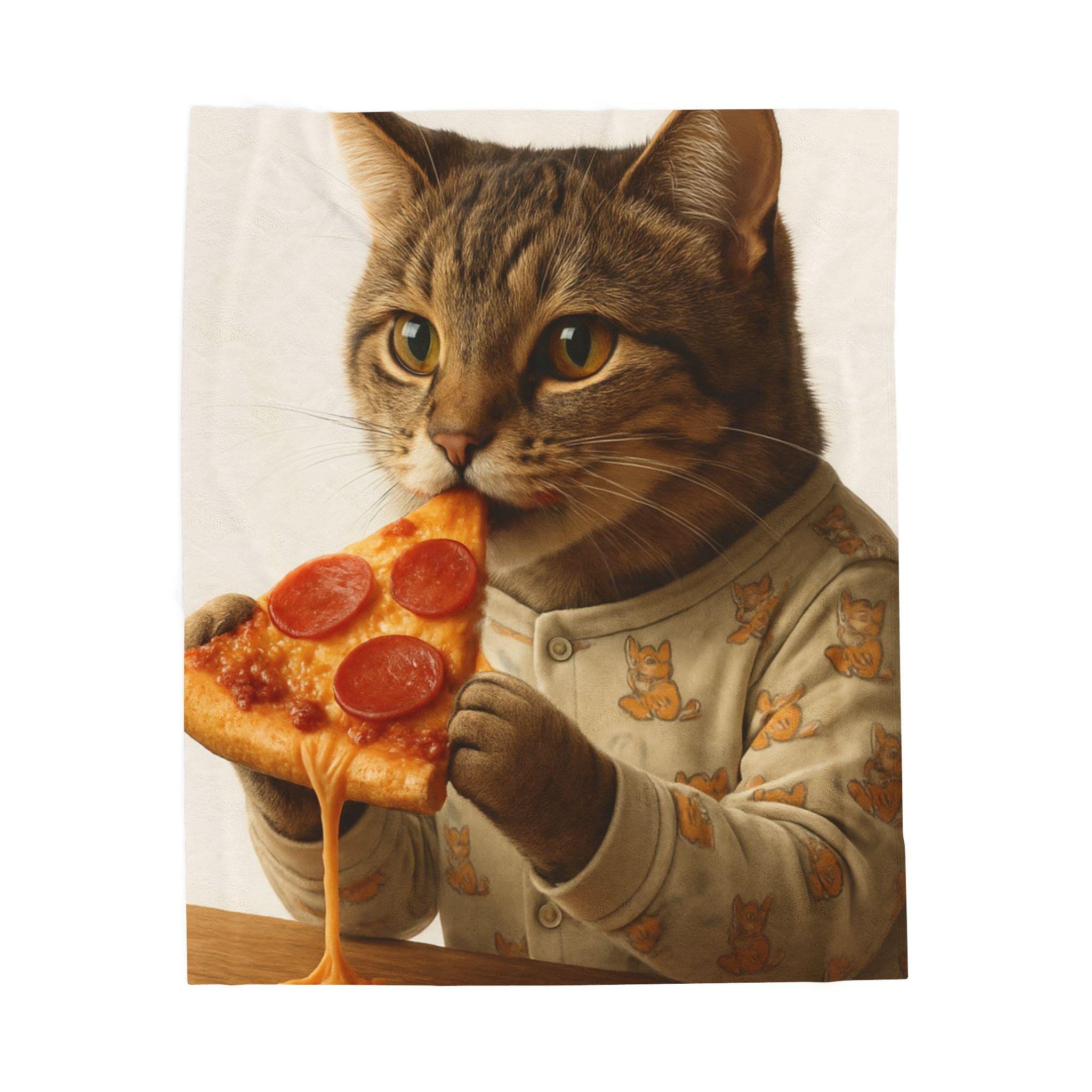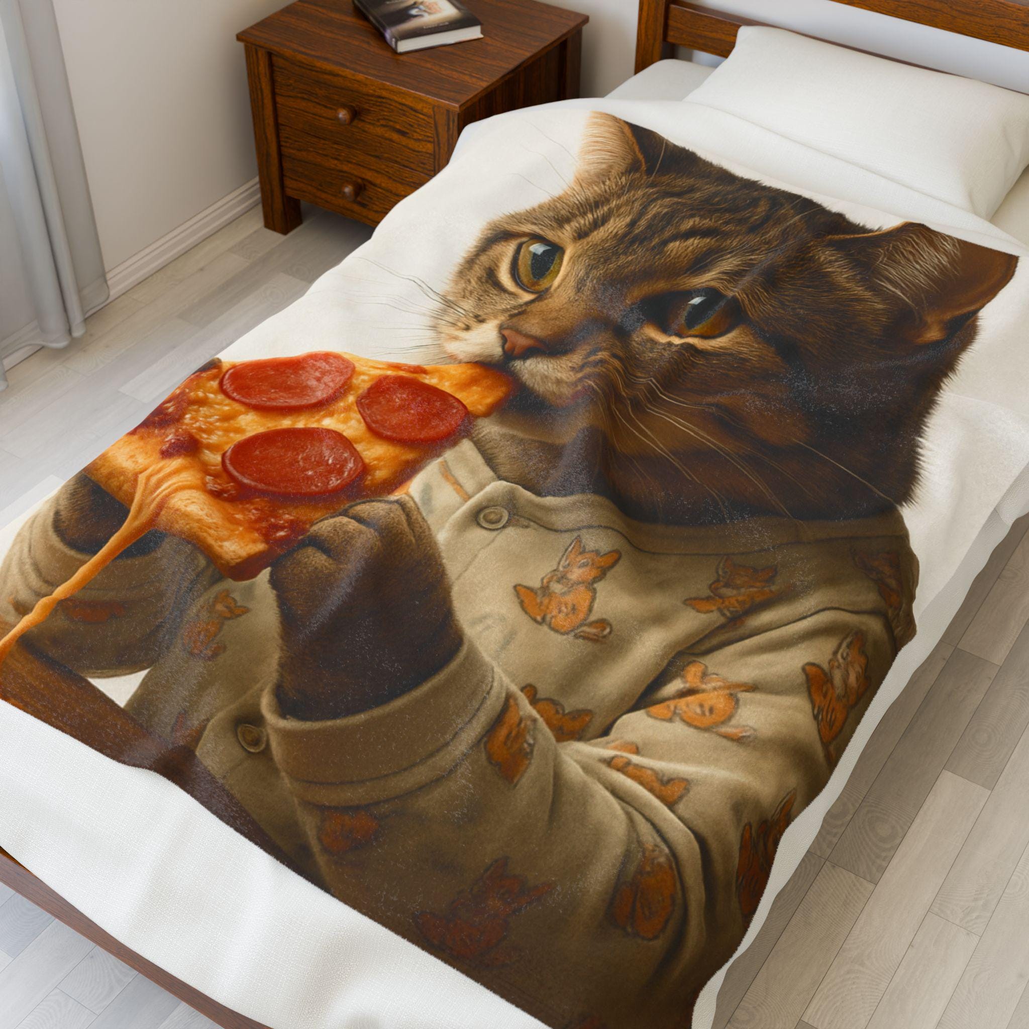 Indulge in cozy comfort with this velveteen plush blanket, perfect for snuggling up on chilly nights. Made from ultra-soft polyester, it offers a gentle, warm embrace that elevates any couch or bedroom setup. The vibrant print of a cat enjoying a slice of pizza adds a whimsical touch, making it a great conversation starter. Ideal for cat lovers and those who appreciate playful designs, this blanket sets a relaxing and joyful atmosphere in your living space. Perfect for gift-giving during holidays, housewarmings, or casual gatherings, it promises to be a cherished addition to any home decor.