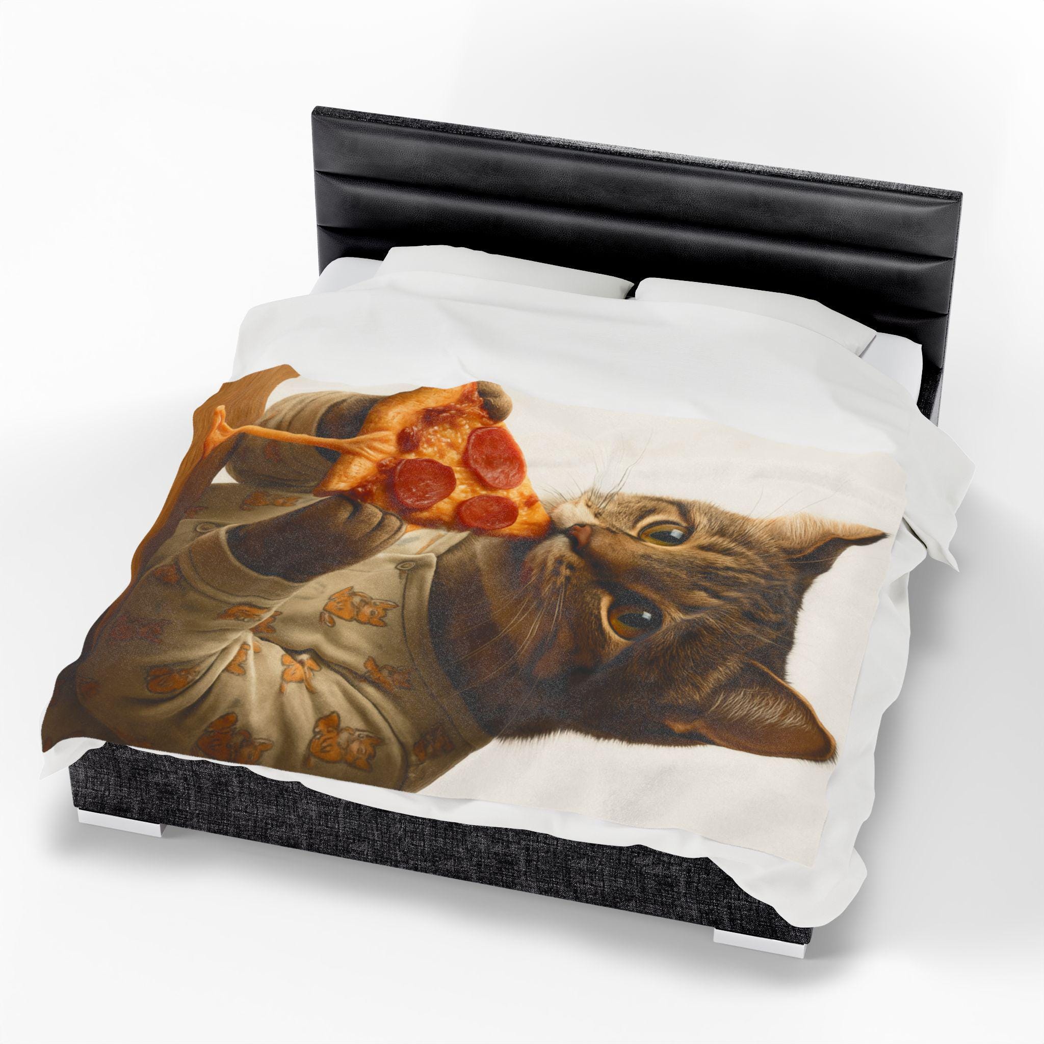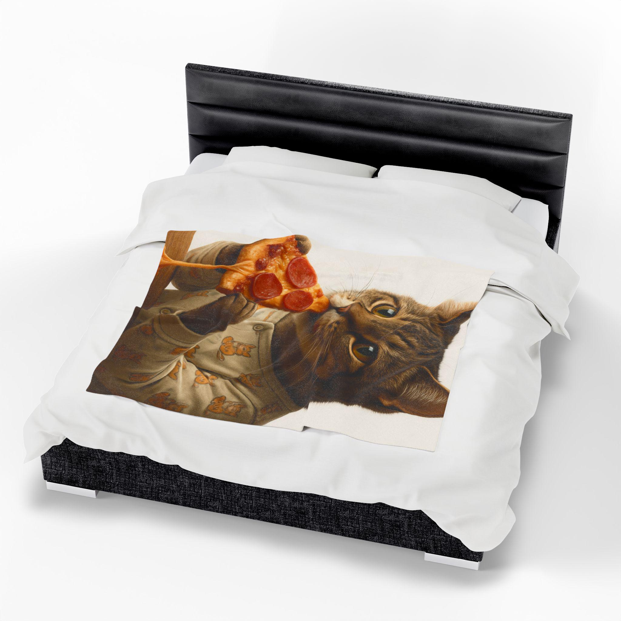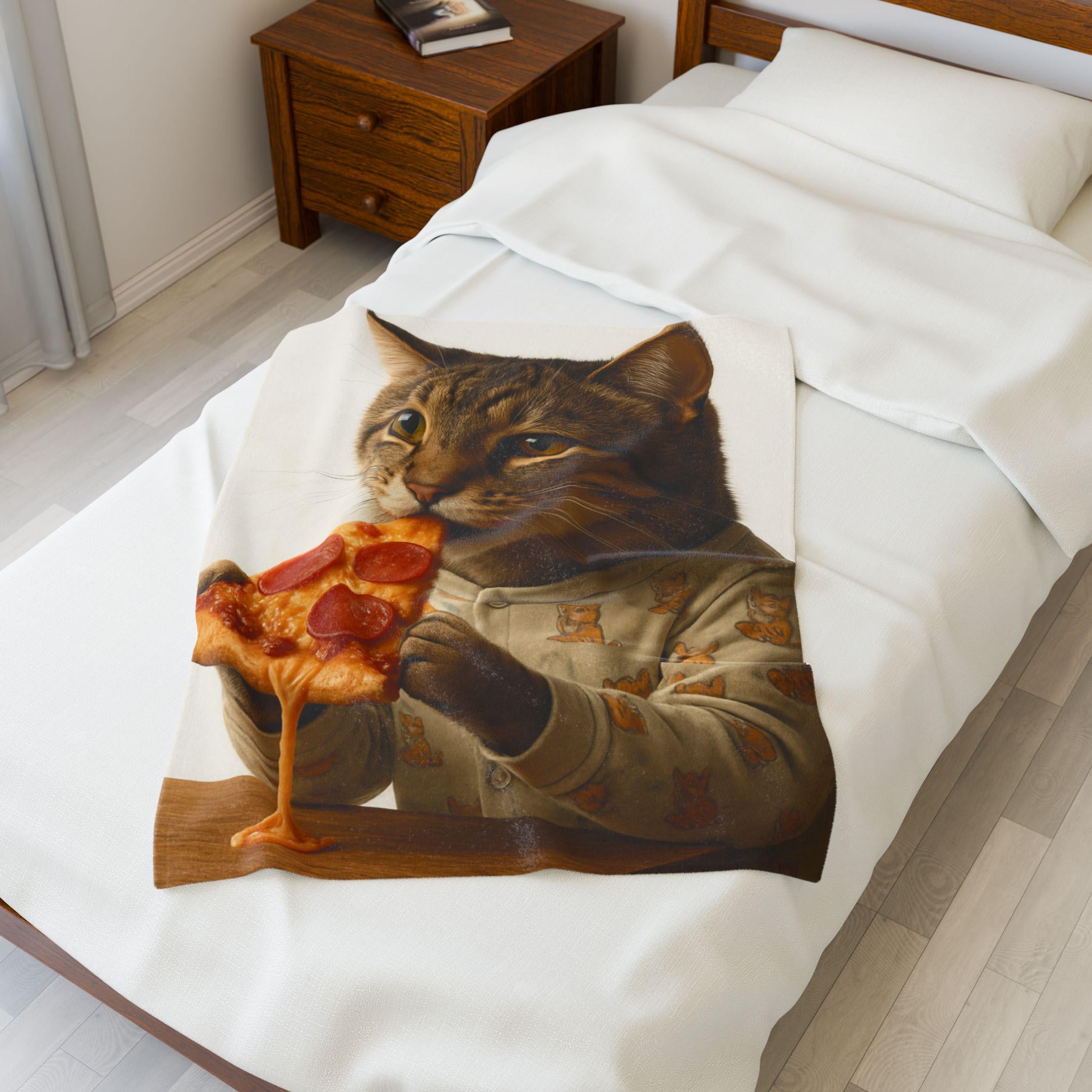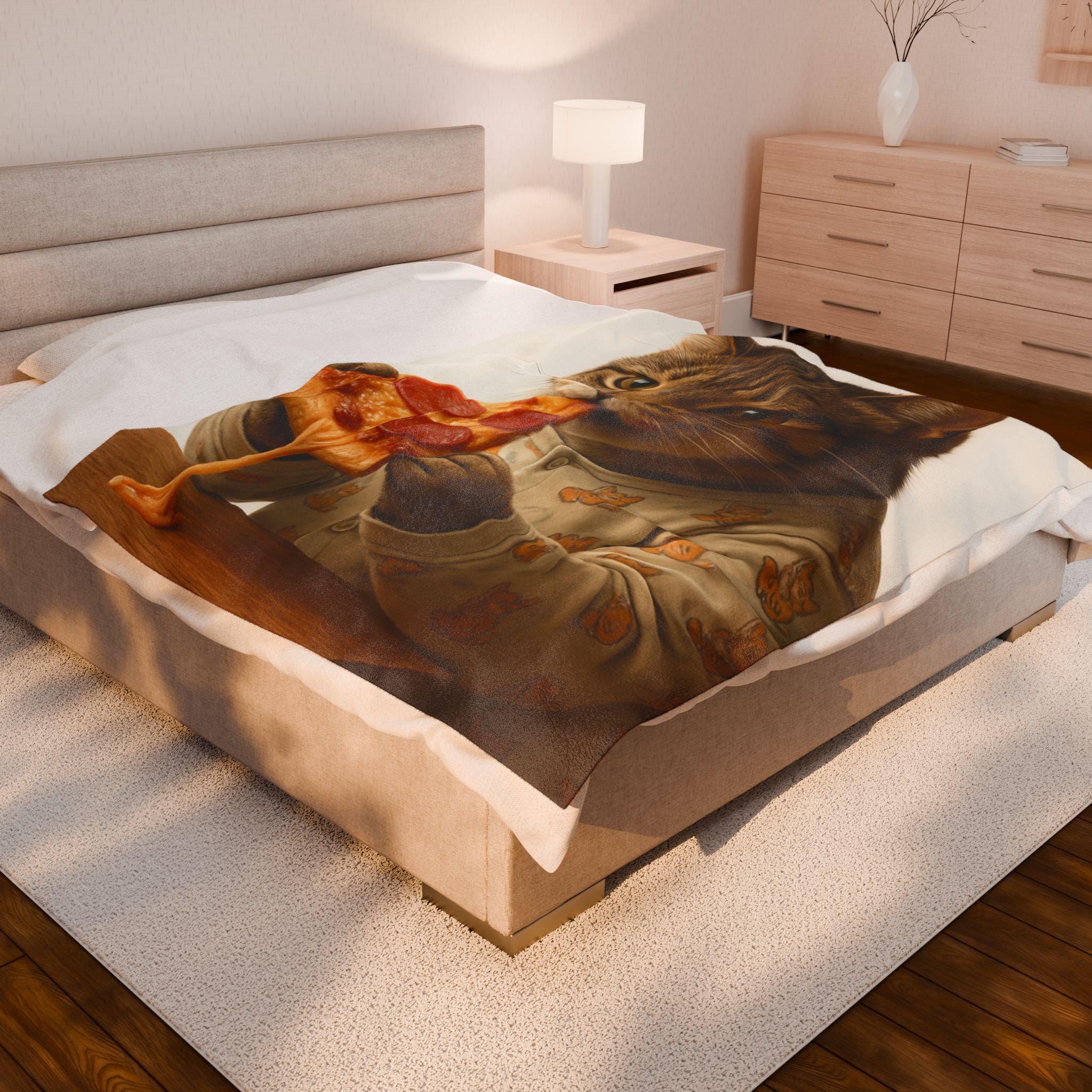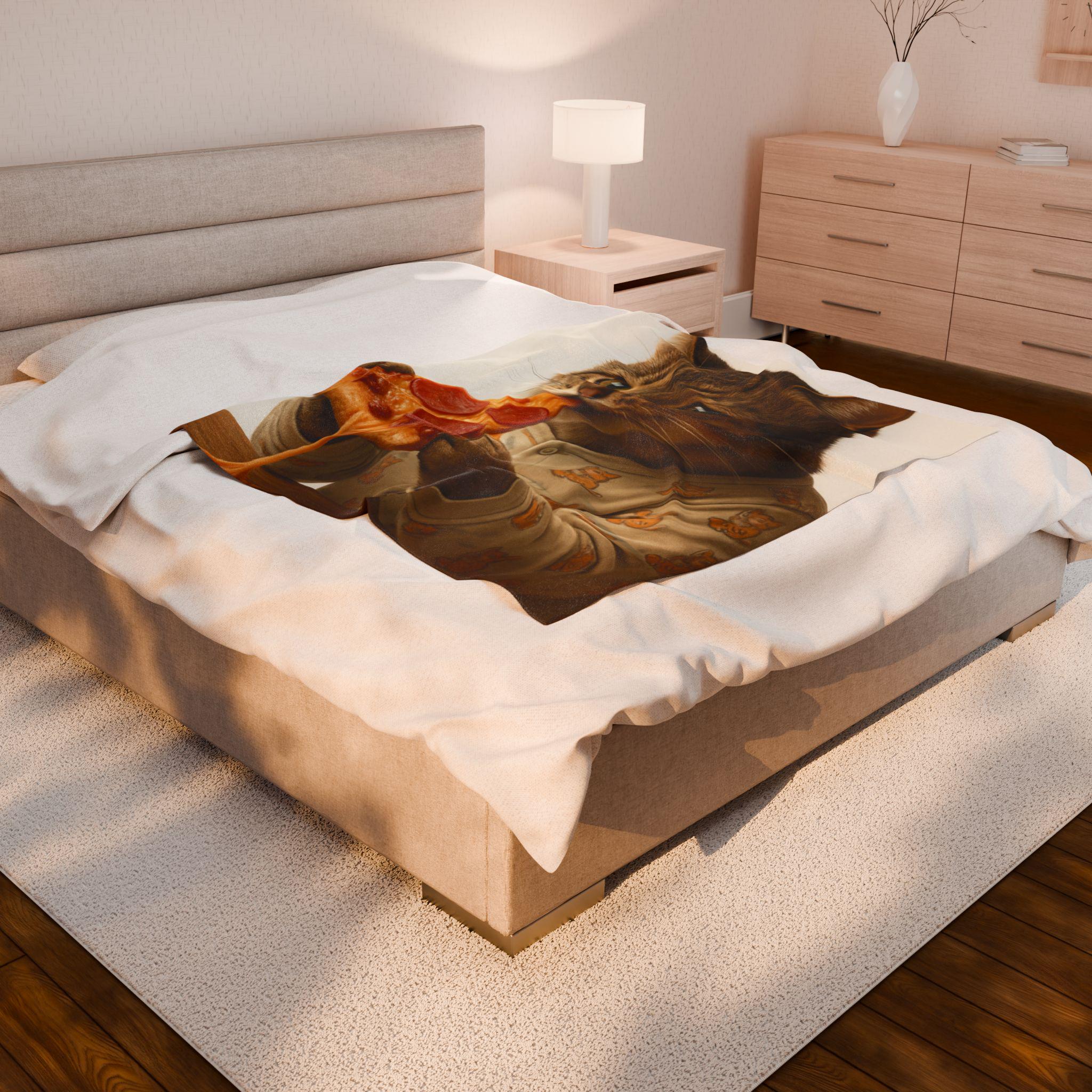 Indulge in cozy comfort with this velveteen plush blanket, perfect for snuggling up on chilly nights. Made from ultra-soft polyester, it offers a gentle, warm embrace that elevates any couch or bedroom setup. The vibrant print of a cat enjoying a slice of pizza adds a whimsical touch, making it a great conversation starter. Ideal for cat lovers and those who appreciate playful designs, this blanket sets a relaxing and joyful atmosphere in your living space. Perfect for gift-giving during holidays, housewarmings, or casual gatherings, it promises to be a cherished addition to any home decor.