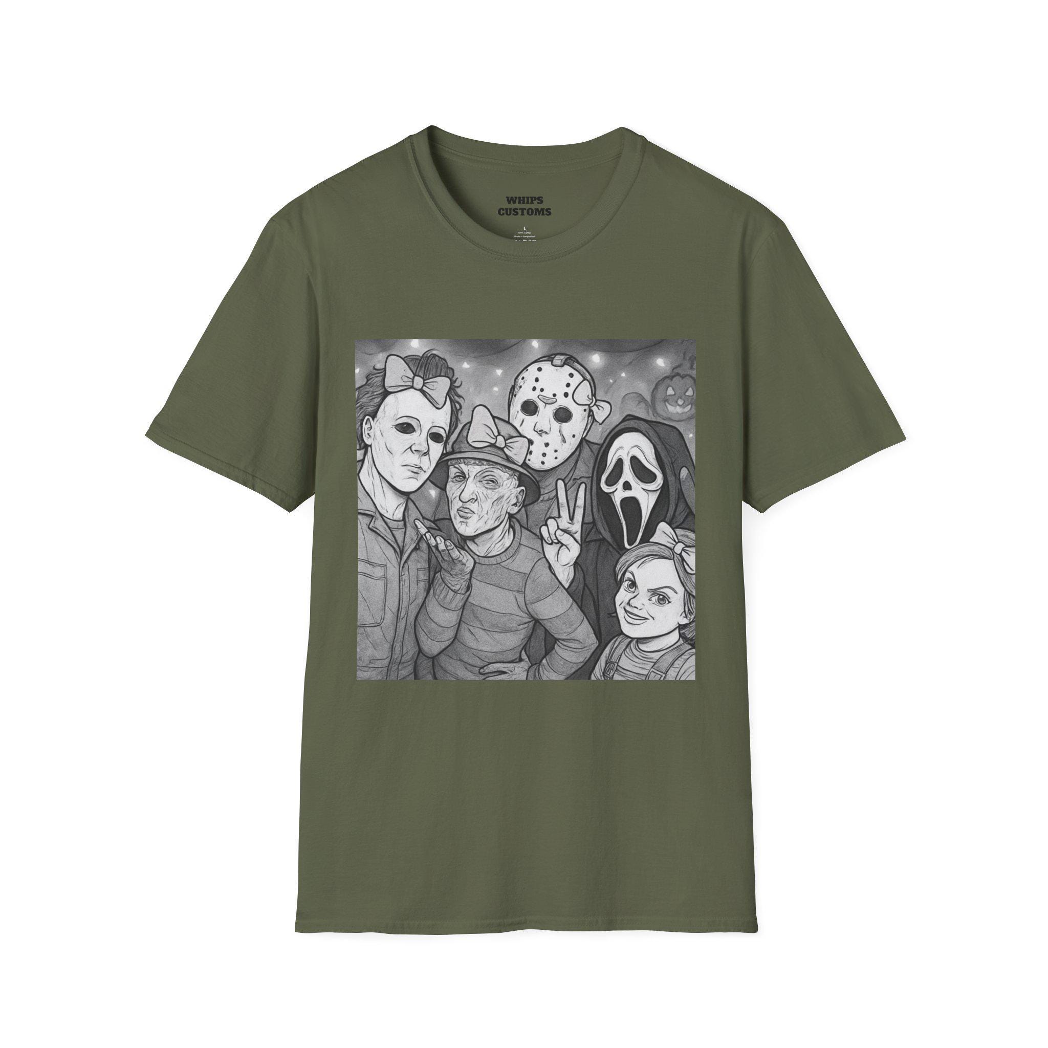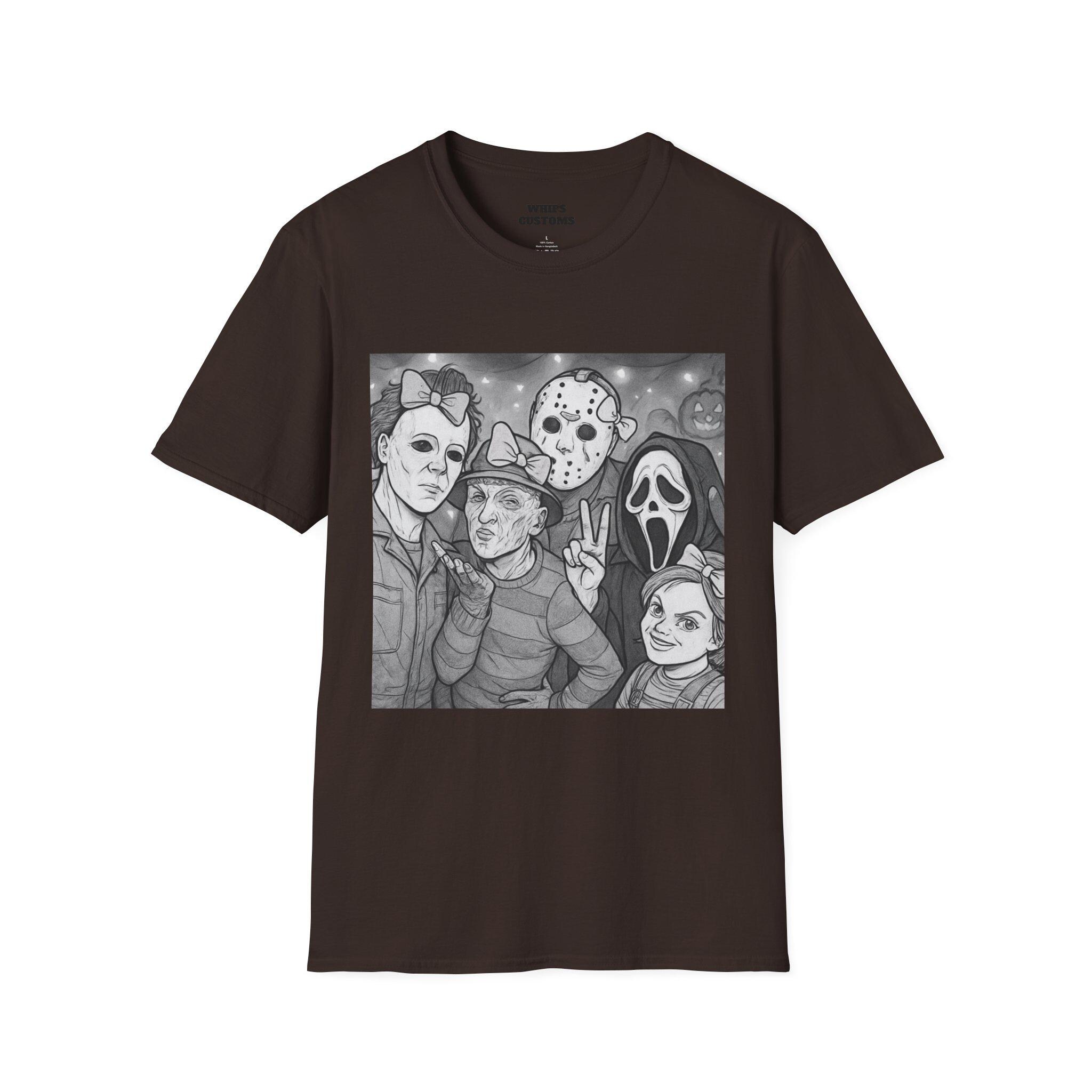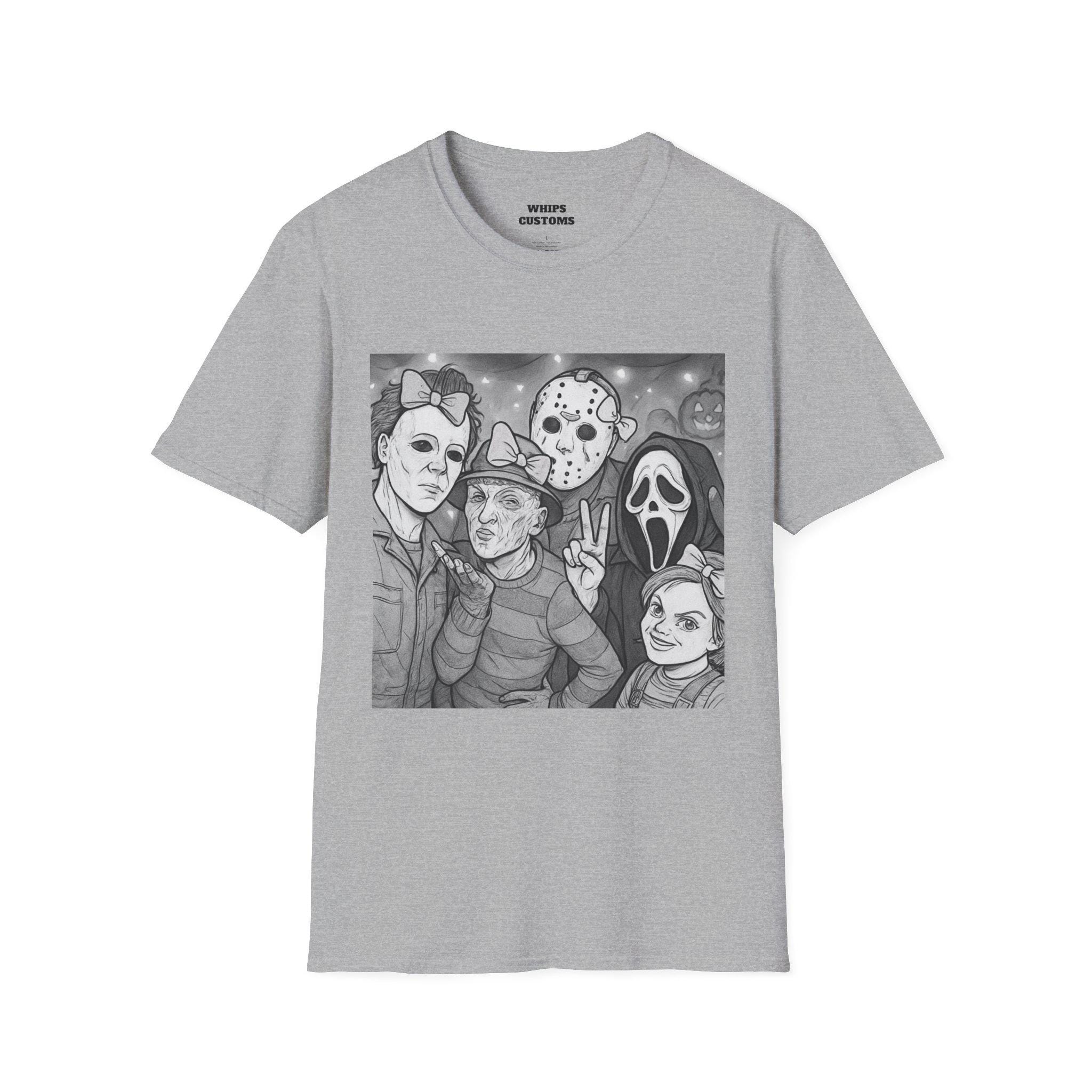 Embrace your love for iconic horror with this Unisex Softstyle T-Shirt. Featuring a unique design that captures the classic essence of your favorite movie villains, this tee is perfect for fans who appreciate a blend of nostalgia and style. The lightweight, breathable fabric ensures comfort, making it ideal for casual outings or cozy movie nights. Whether you're dressing up for Halloween, attending a horror-themed event, or simply expressing your passion for the genre, this t-shirt is a stylish way to showcase your personality. It’s a fantastic gift for friends and family who share your enthusiasm, making it suitable for birthdays, Halloween, or just because!