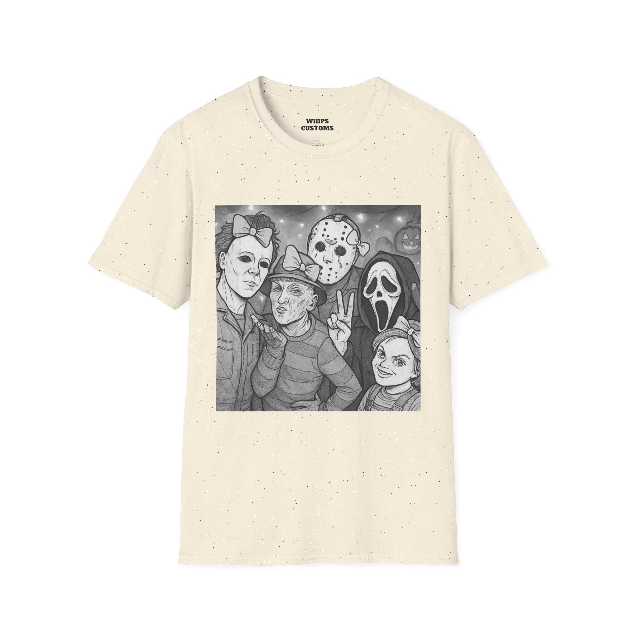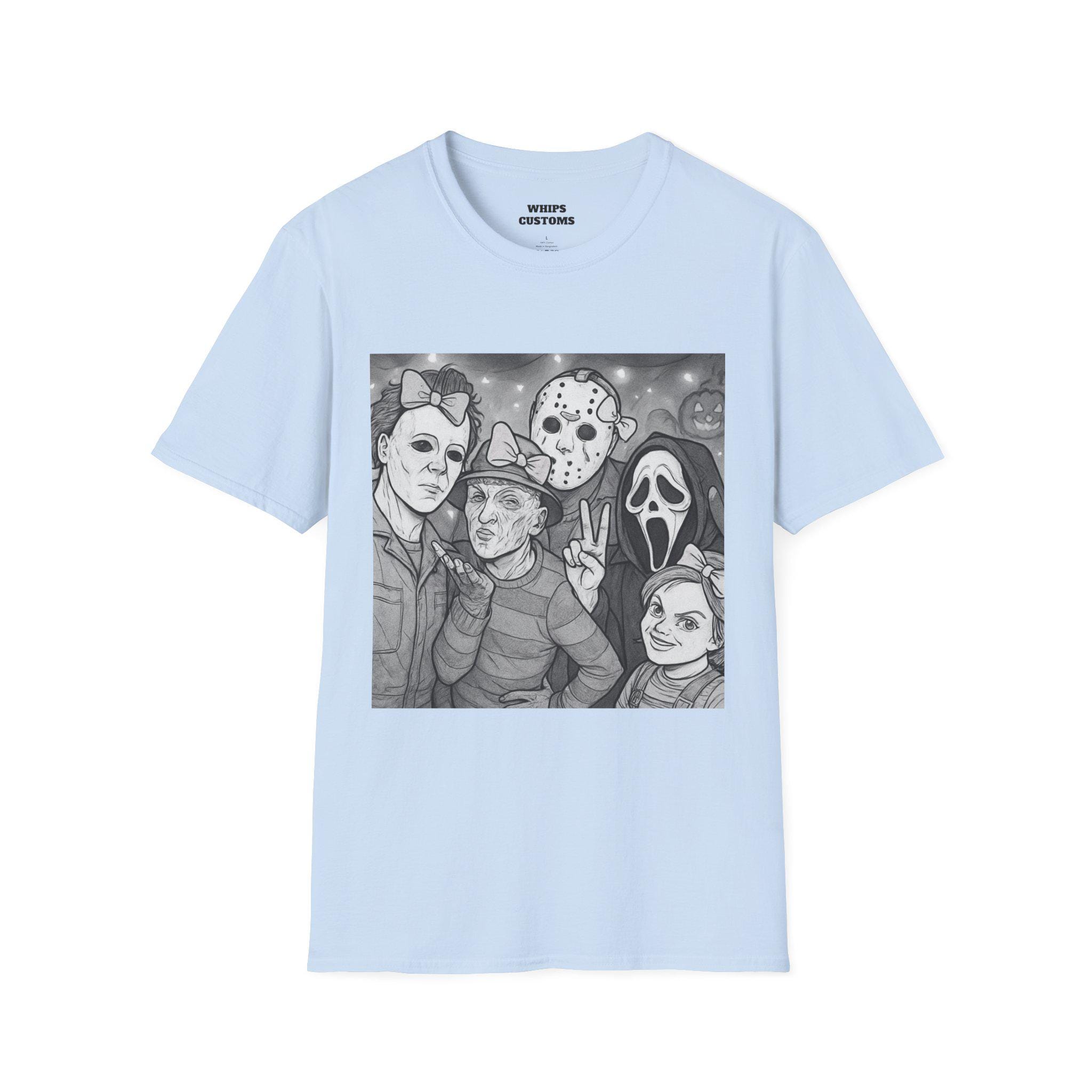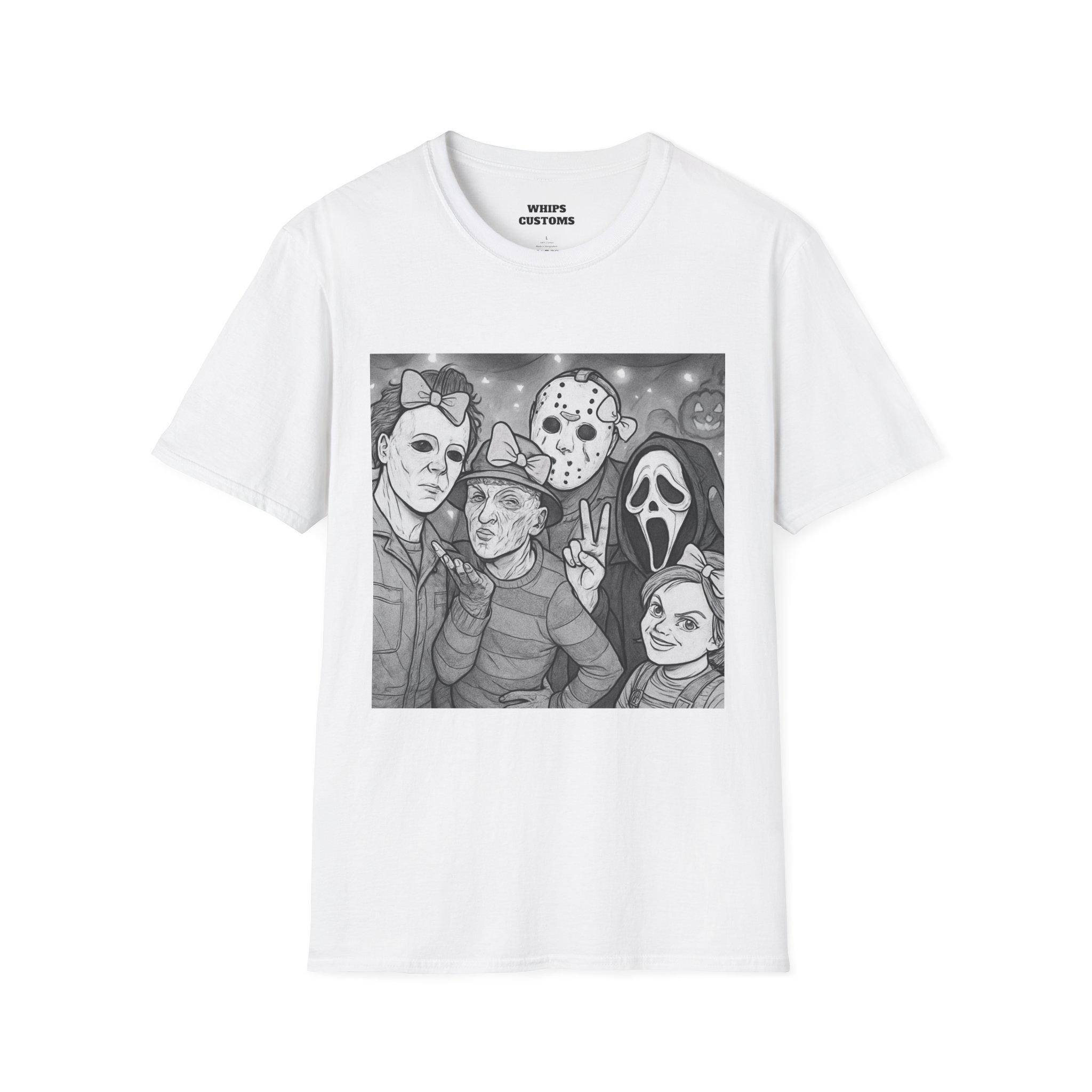 Embrace your love for iconic horror with this Unisex Softstyle T-Shirt. Featuring a unique design that captures the classic essence of your favorite movie villains, this tee is perfect for fans who appreciate a blend of nostalgia and style. The lightweight, breathable fabric ensures comfort, making it ideal for casual outings or cozy movie nights. Whether you're dressing up for Halloween, attending a horror-themed event, or simply expressing your passion for the genre, this t-shirt is a stylish way to showcase your personality. It’s a fantastic gift for friends and family who share your enthusiasm, making it suitable for birthdays, Halloween, or just because!