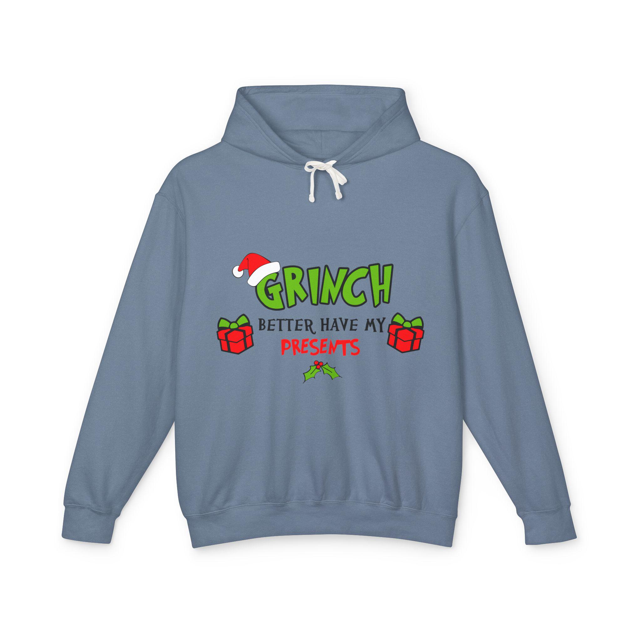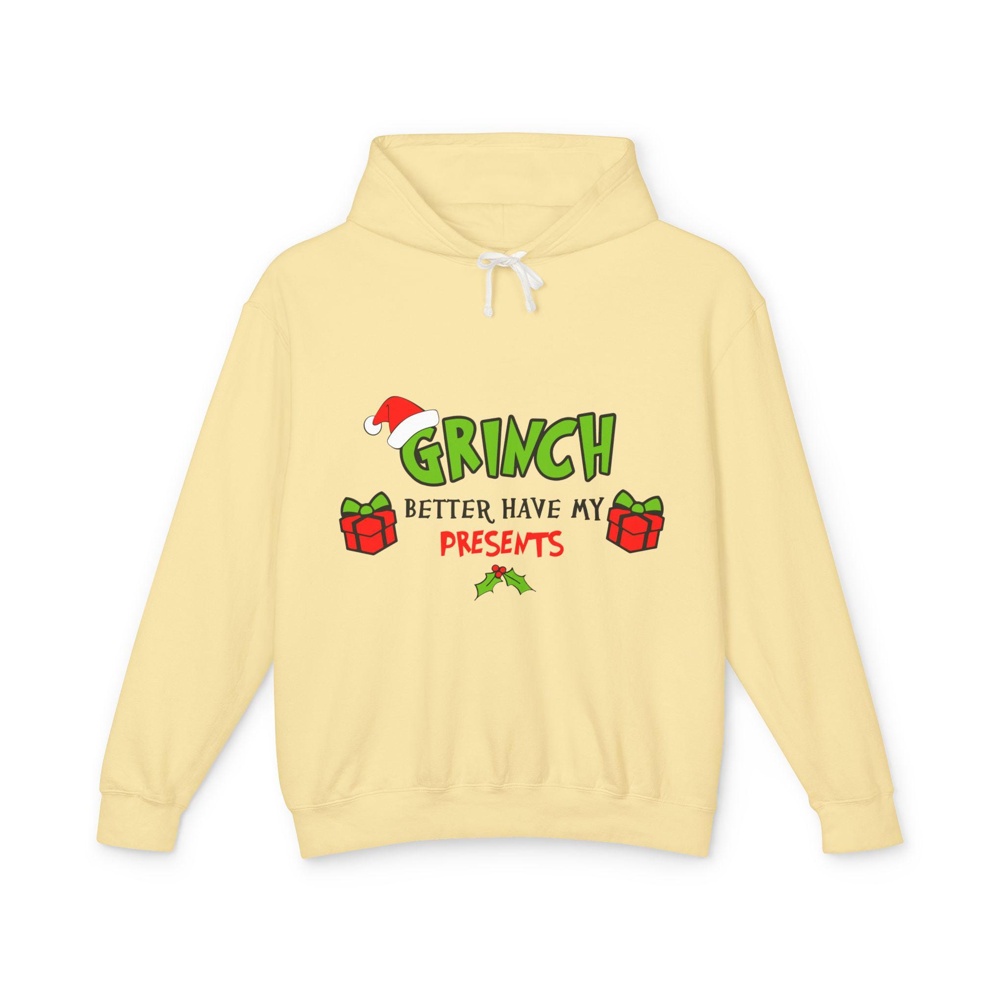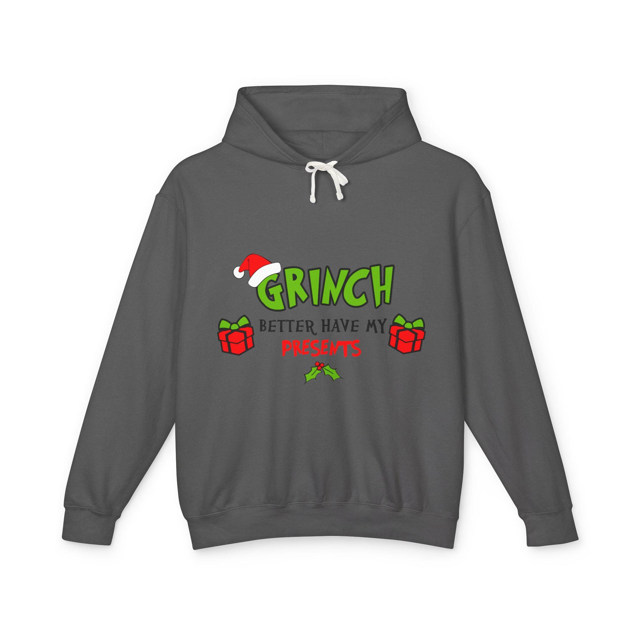 This lightweight hooded sweatshirt brings cozy holiday mischief to slow evenings, tree-trimming sessions, and laid-back winter mornings. The soft, 100% ring-spun cotton feels gentle against skin while the relaxed cut and rolled-forward shoulders let you move freely—reach for a hot cocoa or wrestle with twinkling lights without fuss. The playful Grinch-inspired design—bright green lettering, tiny presents and holly—adds a tongue-in-cheek, festive mood that slips easily into a casual wardrobe. The jersey-lined hood with a natural flatcord adds a clean, wearable detail, and the light fabric keeps it layered-friendly under coats or over tees. Thoughtful manufacturing touches—OEKO-TEX low-impact dyes and membership in the U.S. Cotton Trust Protocol—mean this sweatshirt looks good and carries a quieter environmental story too. Wear it to decorating nights, cookie exchanges, movie marathons, or anytime you want a little holiday attitude.