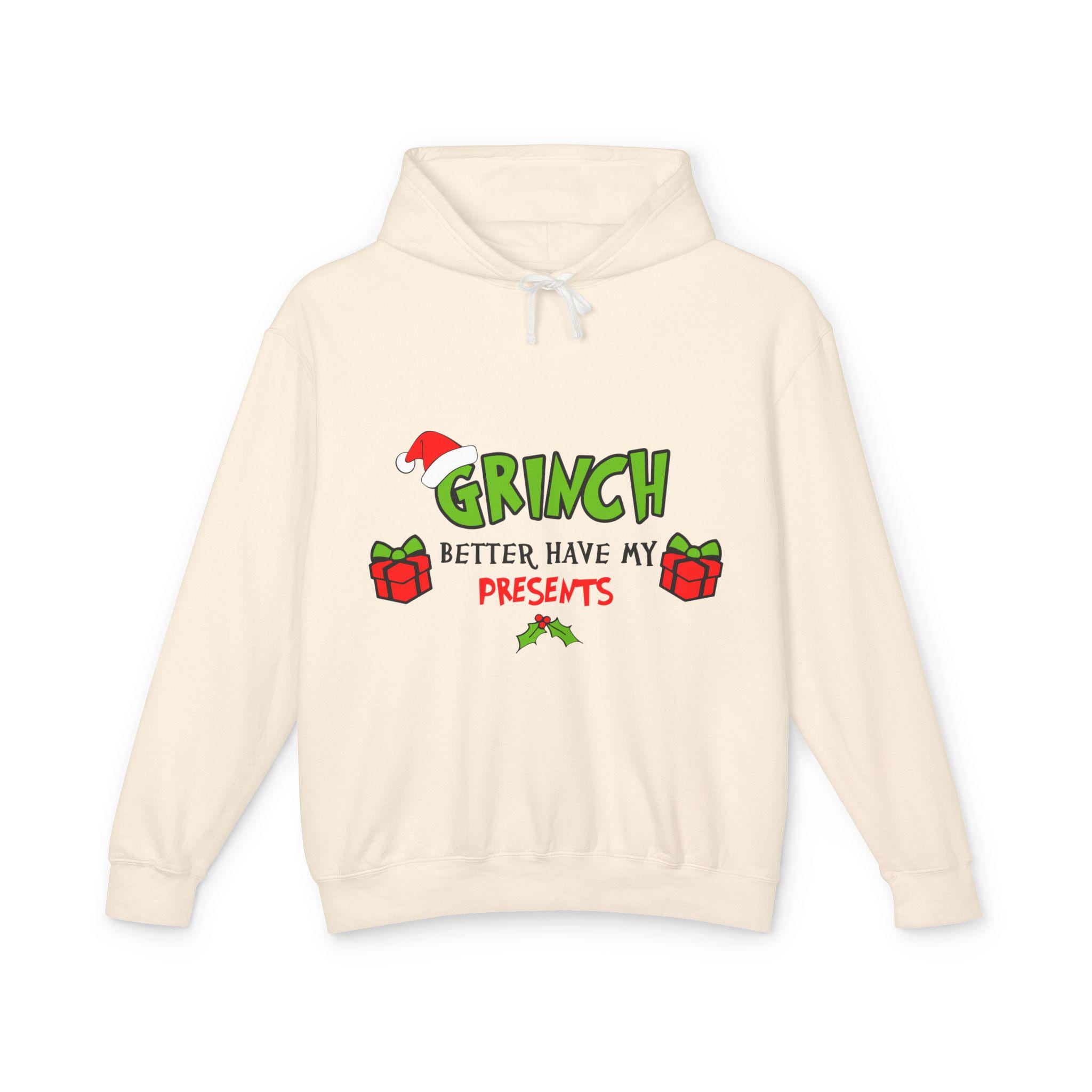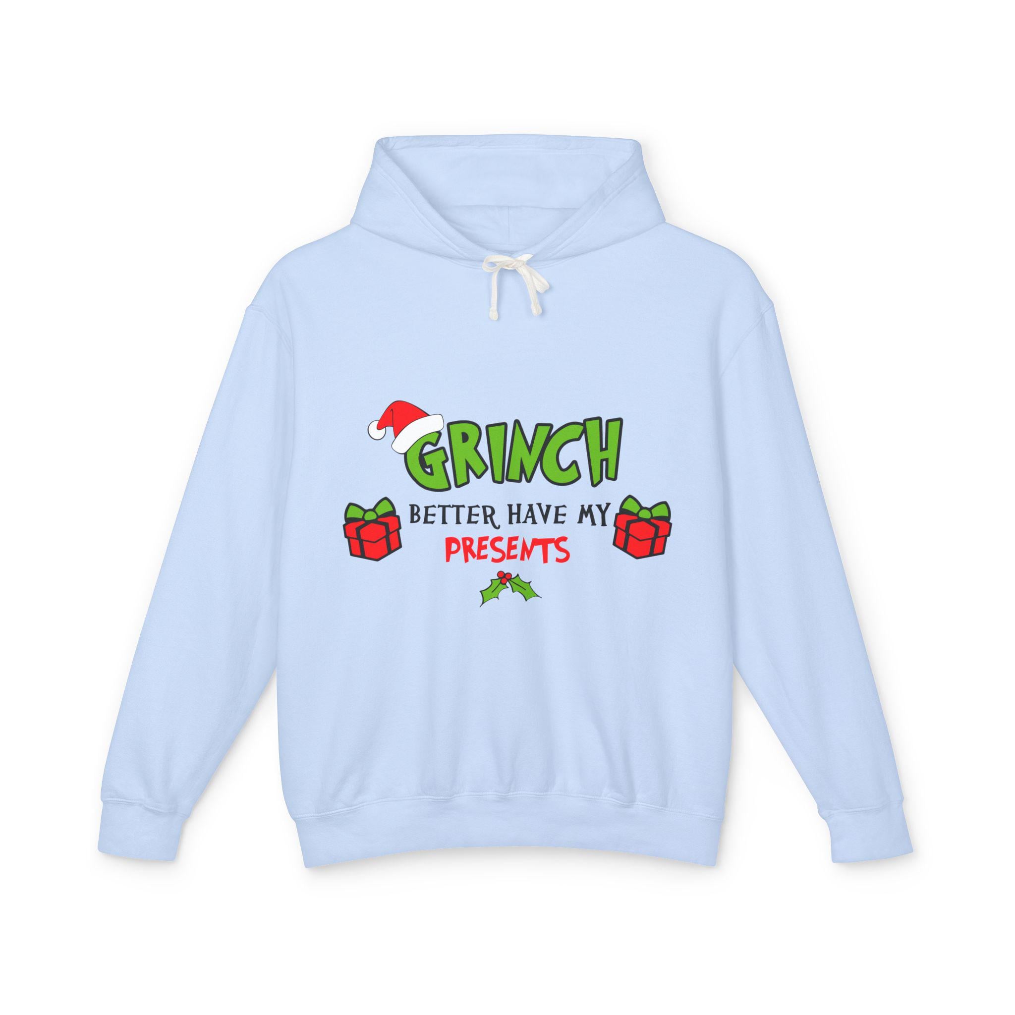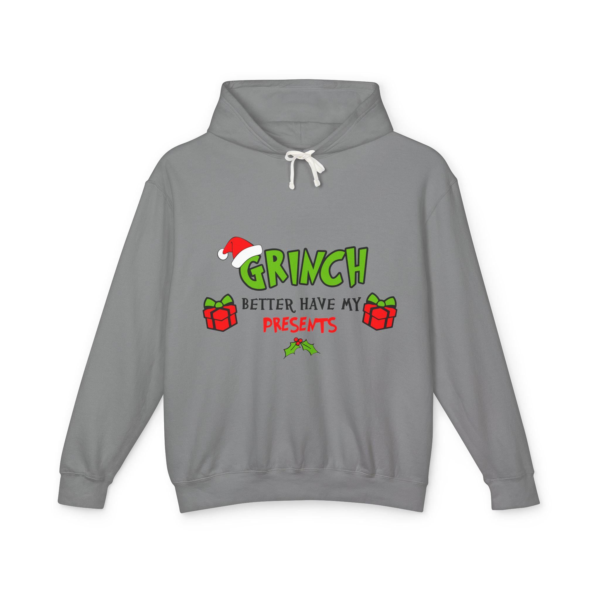 This lightweight hooded sweatshirt brings cozy holiday mischief to slow evenings, tree-trimming sessions, and laid-back winter mornings. The soft, 100% ring-spun cotton feels gentle against skin while the relaxed cut and rolled-forward shoulders let you move freely—reach for a hot cocoa or wrestle with twinkling lights without fuss. The playful Grinch-inspired design—bright green lettering, tiny presents and holly—adds a tongue-in-cheek, festive mood that slips easily into a casual wardrobe. The jersey-lined hood with a natural flatcord adds a clean, wearable detail, and the light fabric keeps it layered-friendly under coats or over tees. Thoughtful manufacturing touches—OEKO-TEX low-impact dyes and membership in the U.S. Cotton Trust Protocol—mean this sweatshirt looks good and carries a quieter environmental story too. Wear it to decorating nights, cookie exchanges, movie marathons, or anytime you want a little holiday attitude.