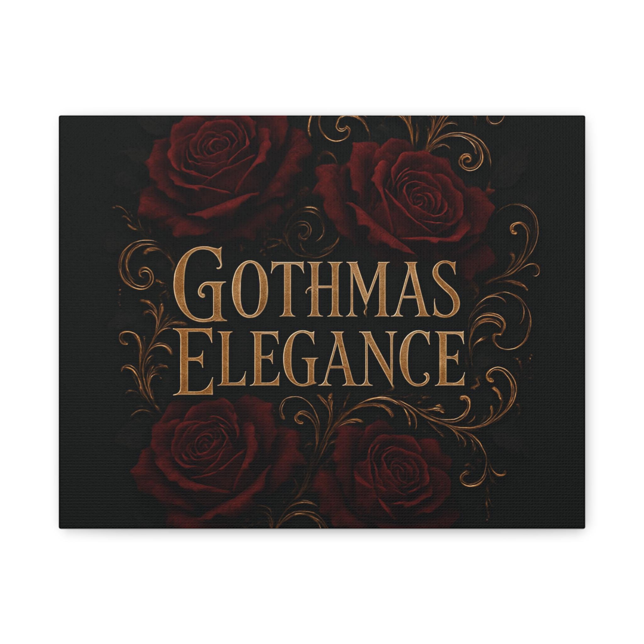A dark, romantic canvas that brings Victorian goth flair to any room. Deep red roses and ornate gold filigree frame the bold ‘Gothmas Elegance’ lettering on a rich black ground. The matte finish and subtle texture lend a museum-quality feel while the lightweight stretched frame makes it easy to hang and reposition. Hang it over a mantel, beside a candlelit reading nook, or in a moody dining corner to set an intimate, nostalgic atmosphere that speaks to lovers of antique glamour and wintertime reverie.